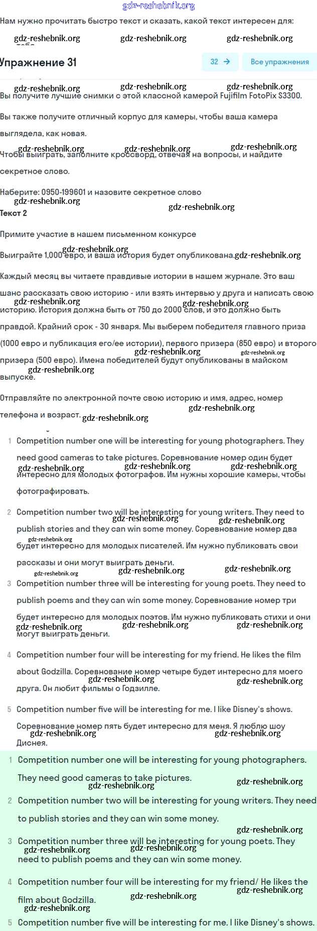 ГДЗ решебники Учебник по Английскому языку 7 класс Биболетова, Трубанева УМК - Exercises 31