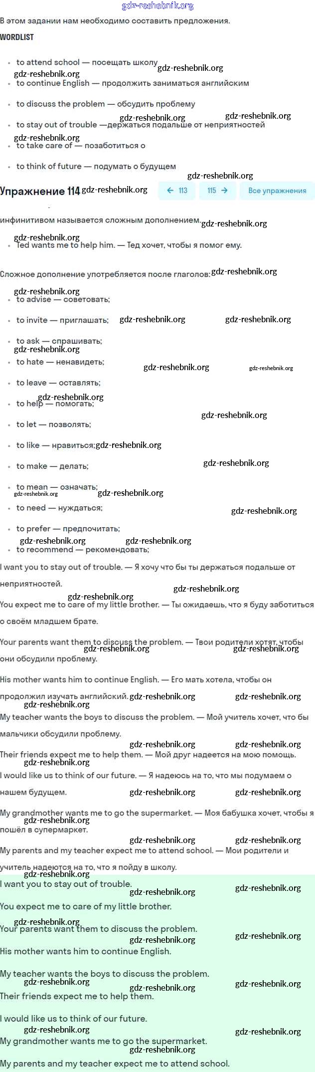 ГДЗ решебники Учебник по Английскому языку 7 класс Биболетова, Трубанева УМК - Exercises 114