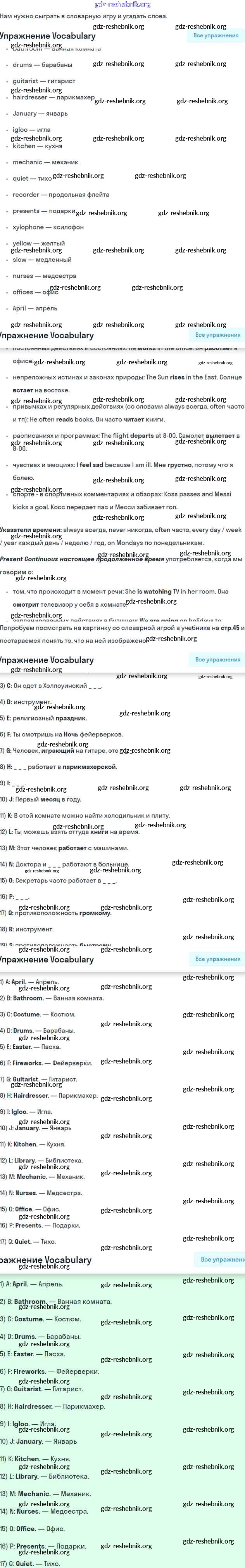 gdz-reshebnik.org - сайт готовых домашних заданий и решебников для школьников по Английскому языку для седьмого класса. Предоставляем готовые ответы на задания, авторские материалы к Учебнику Комарова, Ларионова Инновационная школа - Страницы 45 . Основная часть контента представлена в бесплатном онлайн-формате с удобным и простым интерфейсом.