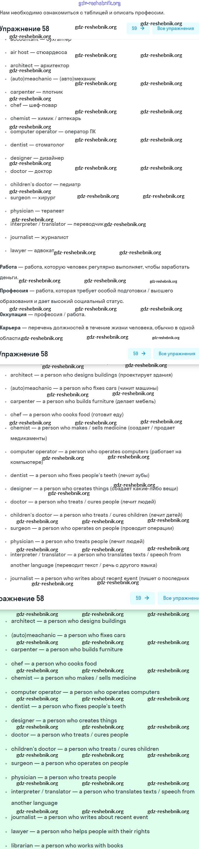ГДЗ решебники Учебник по Английскому языку 8 класс Афанасьева, Михеева Углубленный уровень - Unit 1. Choosing a Career: the World of Jobs 58