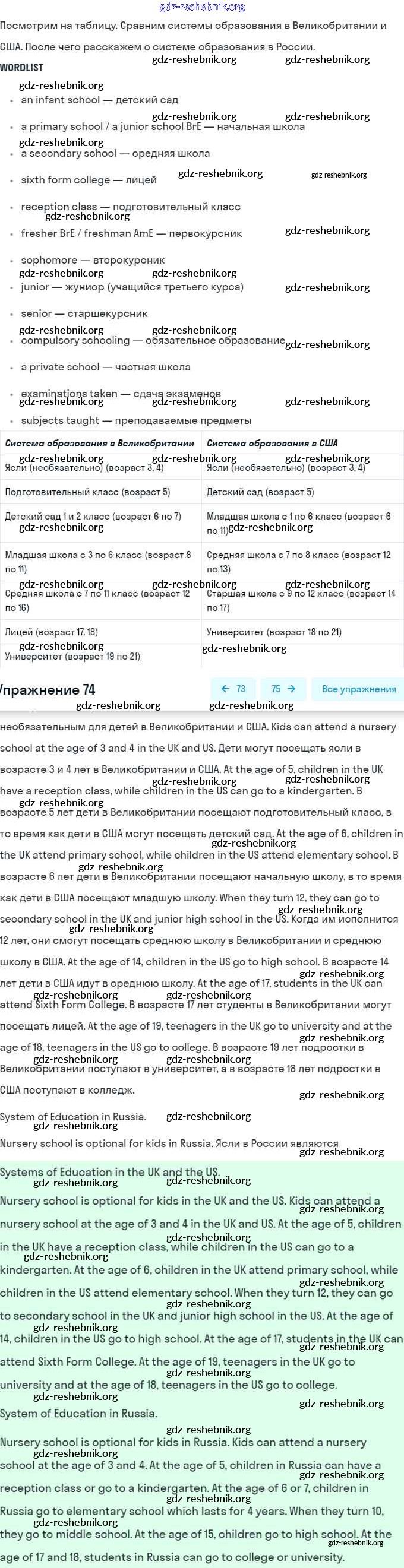 ГДЗ решебники Учебник по Английскому языку 8 класс Афанасьева, Михеева Углубленный уровень - Unit 2. Education: The World of Learning 74