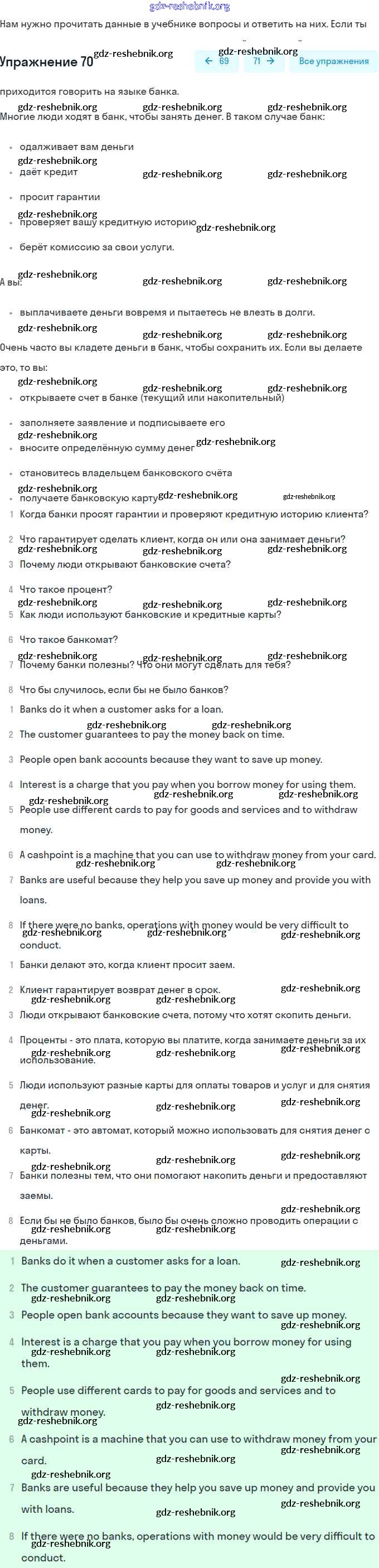 gdz-reshebnik.org - сайт готовых домашних заданий и решебников для школьников по Английскому языку для восьмого класса. Предоставляем готовые ответы на задания, авторские материалы к Учебнику Афанасьева, Михеева Углубленный уровень - Unit 3. Shopping: The World of Money 70 . Основная часть контента представлена в бесплатном онлайн-формате с удобным и простым интерфейсом.