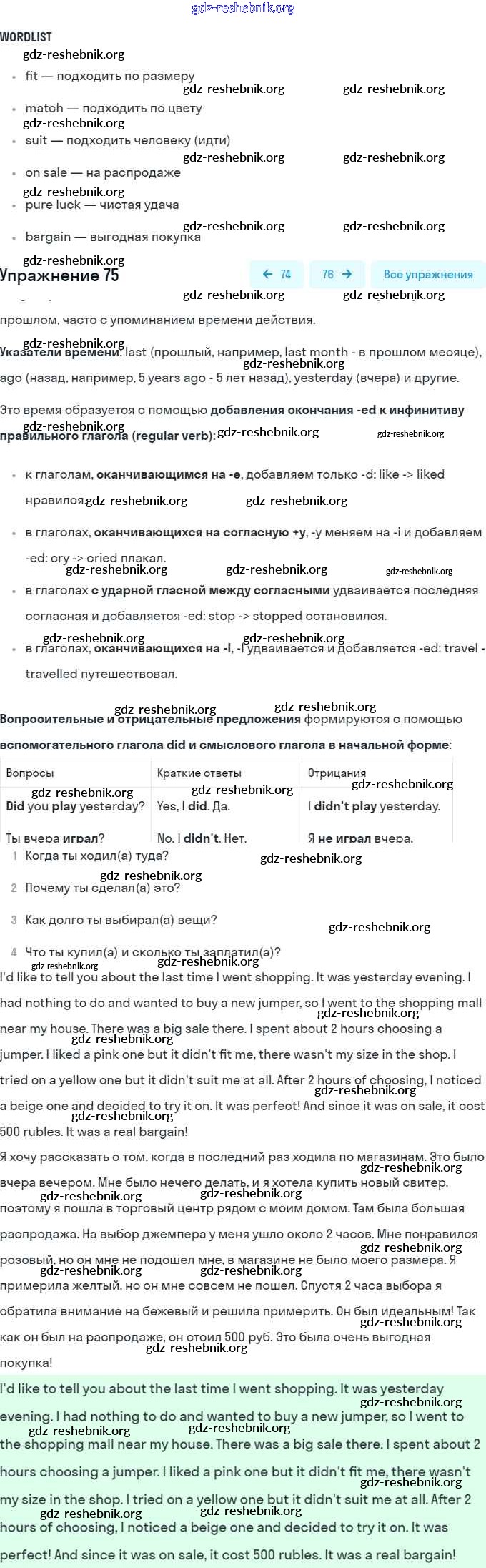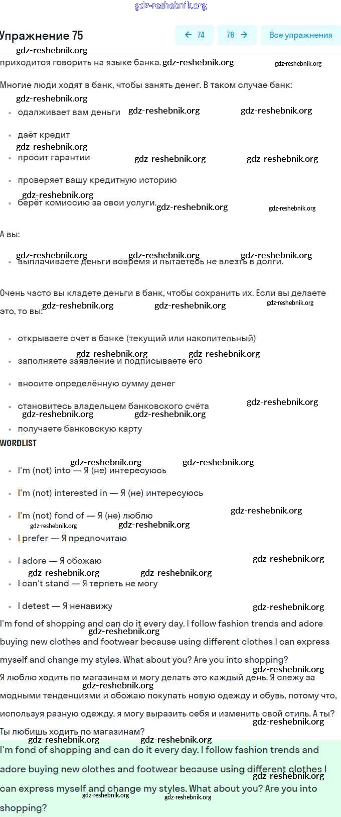 gdz-reshebnik.org - сайт готовых домашних заданий и решебников для школьников по Английскому языку для восьмого класса. Предоставляем готовые ответы на задания, авторские материалы к Учебнику Афанасьева, Михеева Углубленный уровень - Unit 3. Shopping: The World of Money 75 . Основная часть контента представлена в бесплатном онлайн-формате с удобным и простым интерфейсом.