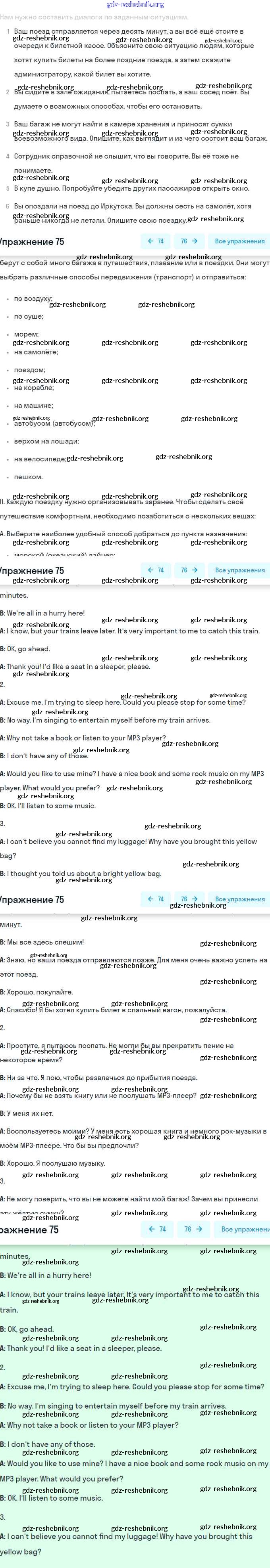 ГДЗ решебники Учебник по Английскому языку 8 класс Афанасьева, Михеева Углубленный уровень - Unit 5. Going to Places: The World of Travelling 75