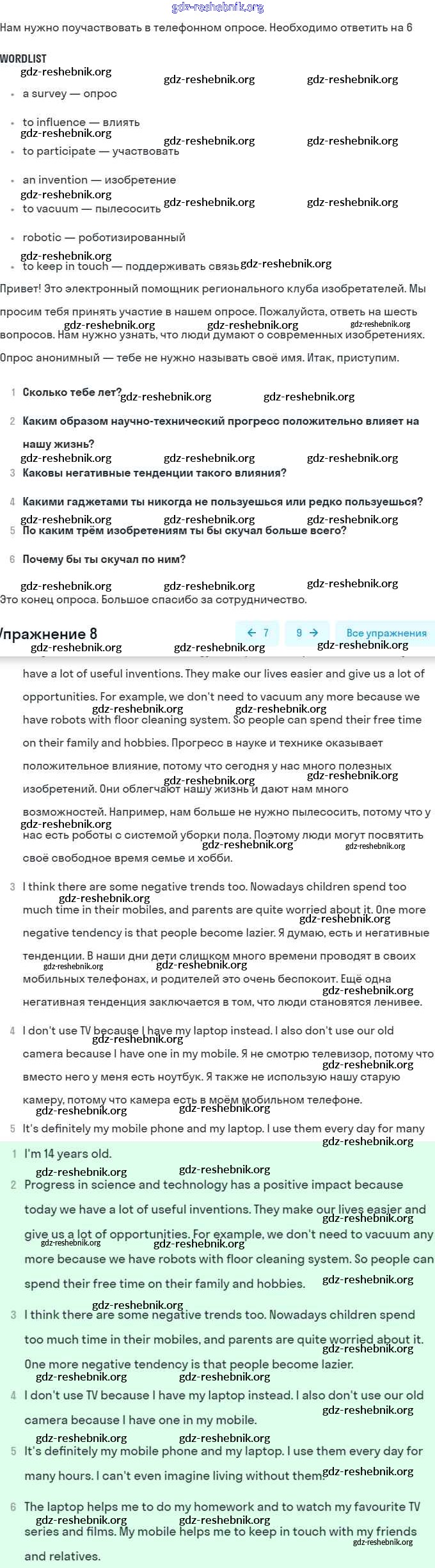 ГДЗ решебники Учебник по Английскому языку 8 класс Афанасьева, Михеева Углубленный уровень - Unit 4 8