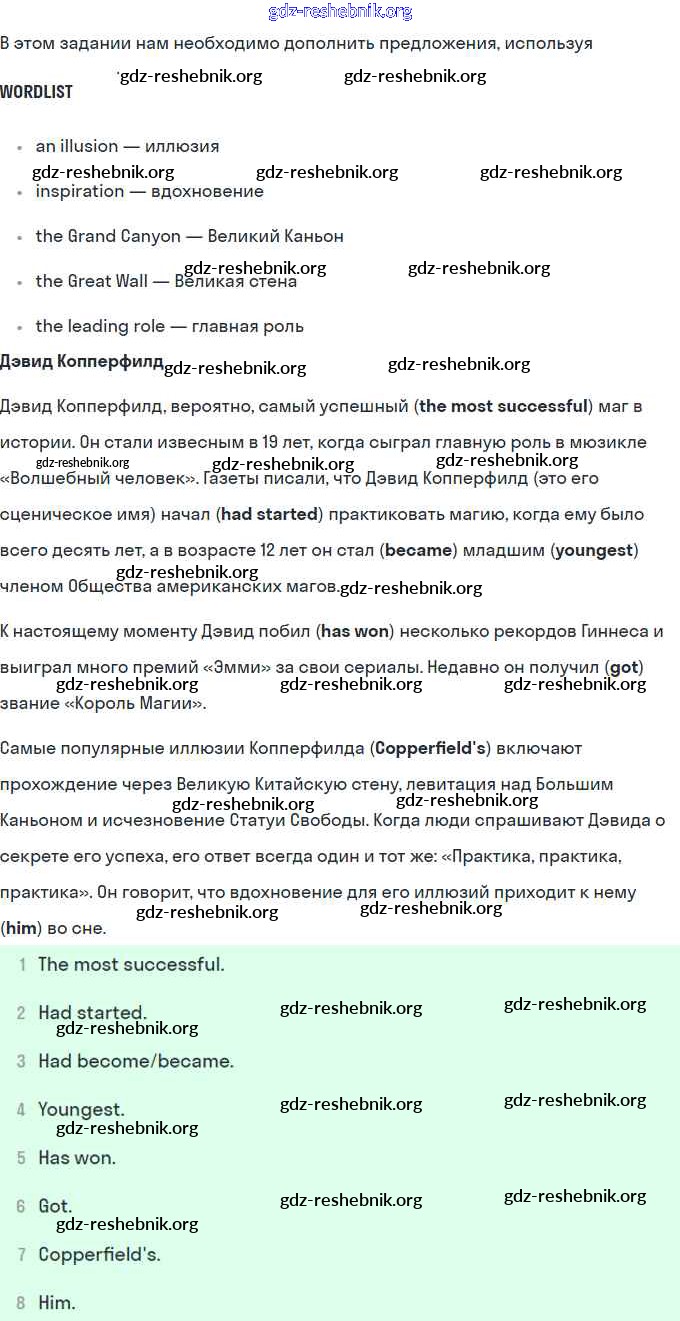 gdz-reshebnik.org - сайт готовых домашних заданий и решебников для школьников по Английскому языку для восьмого класса. Предоставляем готовые ответы на задания, авторские материалы к Рабочей тетради Афанасьева, Михеева Rainbow - Unit 2. Performing arts: theatre 34 . Основная часть контента представлена в бесплатном онлайн-формате с удобным и простым интерфейсом.