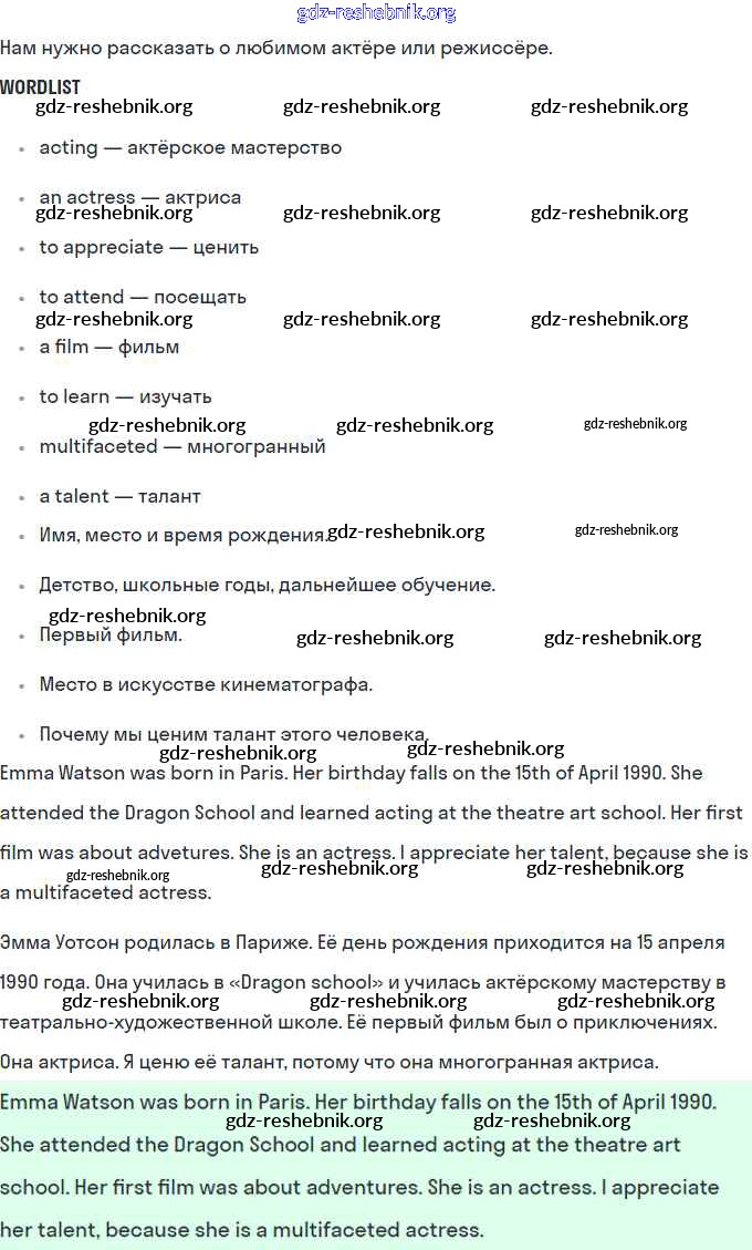 gdz-reshebnik.org - сайт готовых домашних заданий и решебников для школьников по Английскому языку для восьмого класса. Предоставляем готовые ответы на задания, авторские материалы к Рабочей тетради Афанасьева, Михеева Rainbow - Unit 3. Performing arts: cinema 10 . Основная часть контента представлена в бесплатном онлайн-формате с удобным и простым интерфейсом.