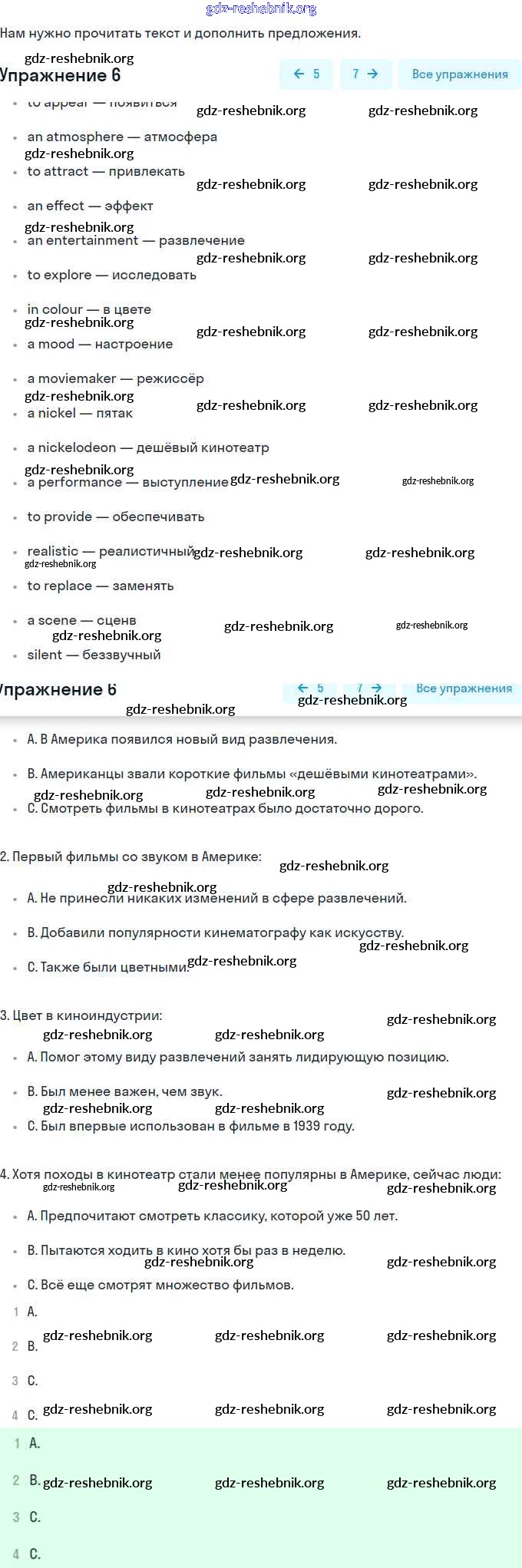 gdz-reshebnik.org - сайт готовых домашних заданий и решебников для школьников по Английскому языку для восьмого класса. Предоставляем готовые ответы на задания, авторские материалы к Рабочей тетради Афанасьева, Михеева Rainbow - Unit 3. Performing arts: cinema 6 . Основная часть контента представлена в бесплатном онлайн-формате с удобным и простым интерфейсом.