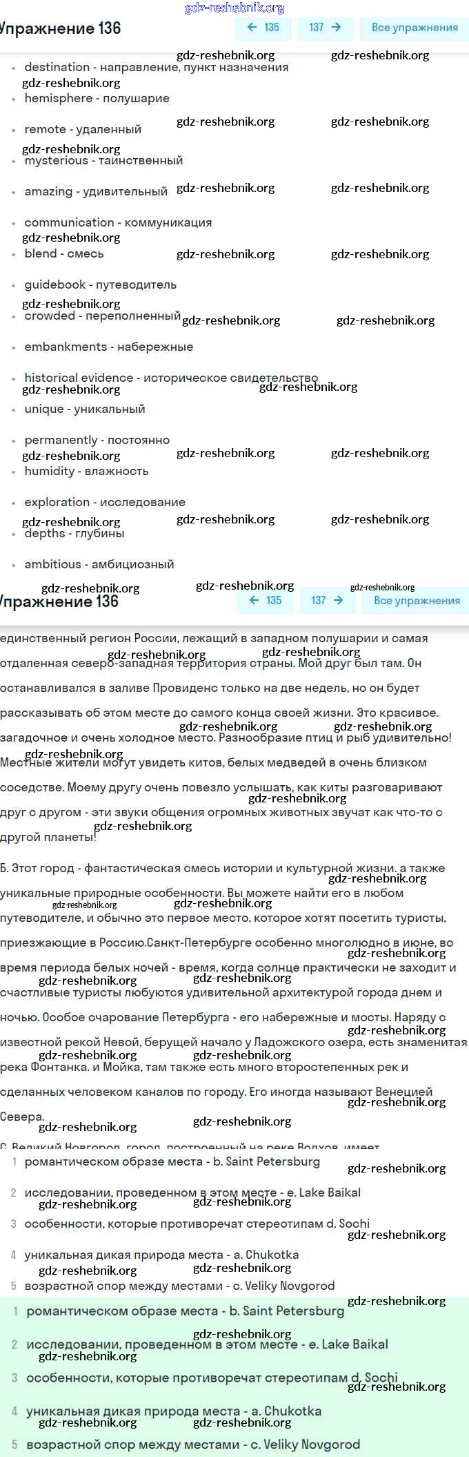 gdz-reshebnik.org - сайт готовых домашних заданий и решебников для школьников по Английскому языку для восьмого класса. Предоставляем готовые ответы на задания, авторские материалы к Учебнику Биболетова, Трубанева Enjoy English - Section 7 136 . Основная часть контента представлена в бесплатном онлайн-формате с удобным и простым интерфейсом.