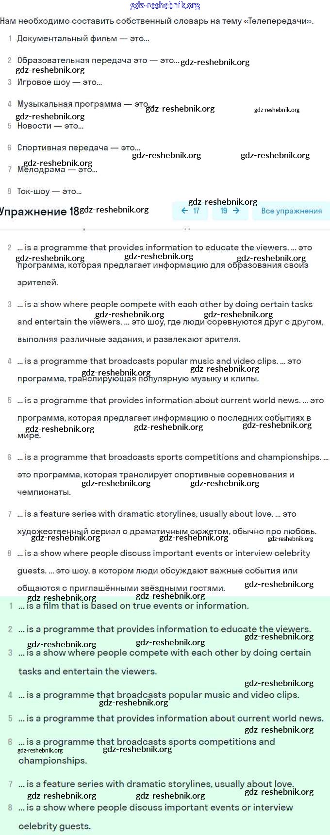 gdz-reshebnik.org - сайт готовых домашних заданий и решебников для школьников по Английскому языку для восьмого класса. Предоставляем готовые ответы на задания, авторские материалы к Учебнику Биболетова, Трубанева Enjoy English - Section 2 18 . Основная часть контента представлена в бесплатном онлайн-формате с удобным и простым интерфейсом.