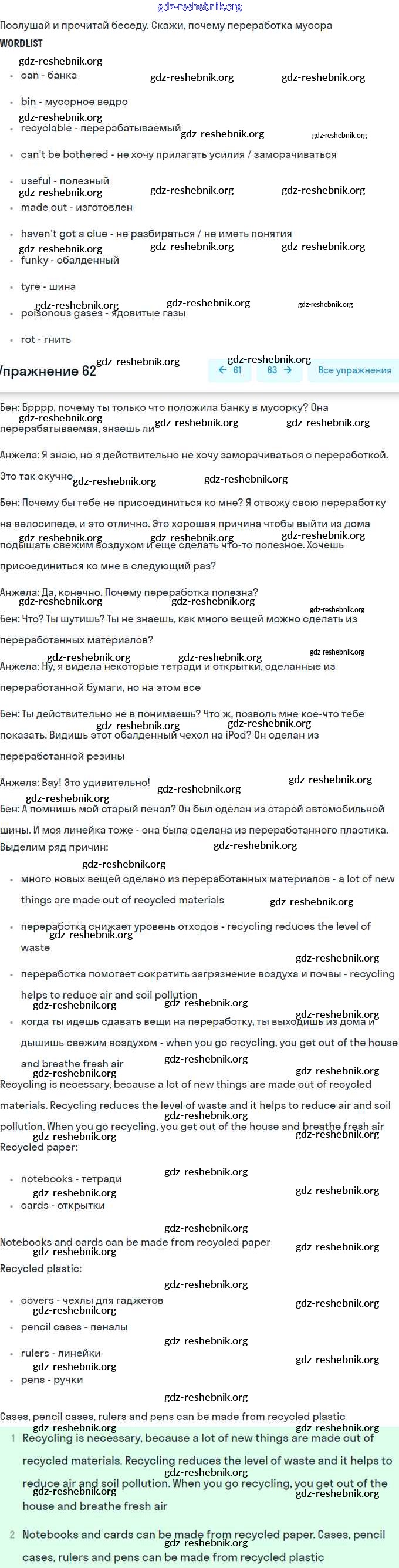 ГДЗ решебники Учебник по Английскому языку 8 класс Биболетова, Трубанева Enjoy English - Section 4 62