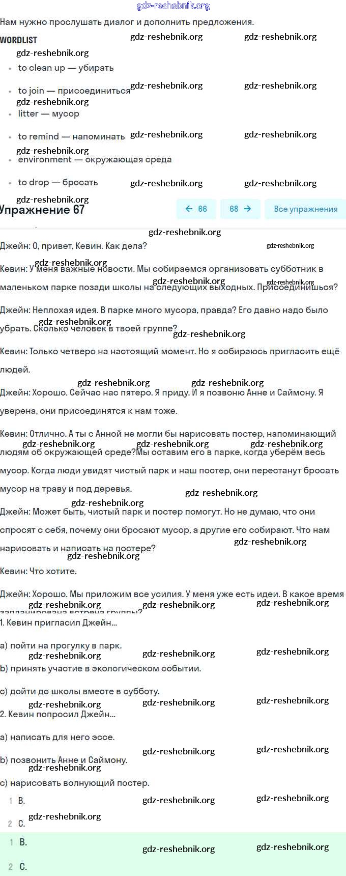 ГДЗ решебники Учебник по Английскому языку 8 класс Биболетова, Трубанева Enjoy English - Section 4 67