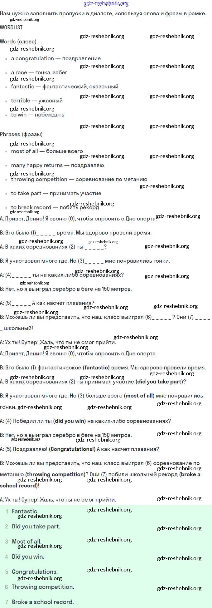 ГДЗ решебники Рабочая тетрадь по Английскому языку 8 класс Кузовлёв, Перегудова - Unit 4. Are you fond of sport? Урок 7
