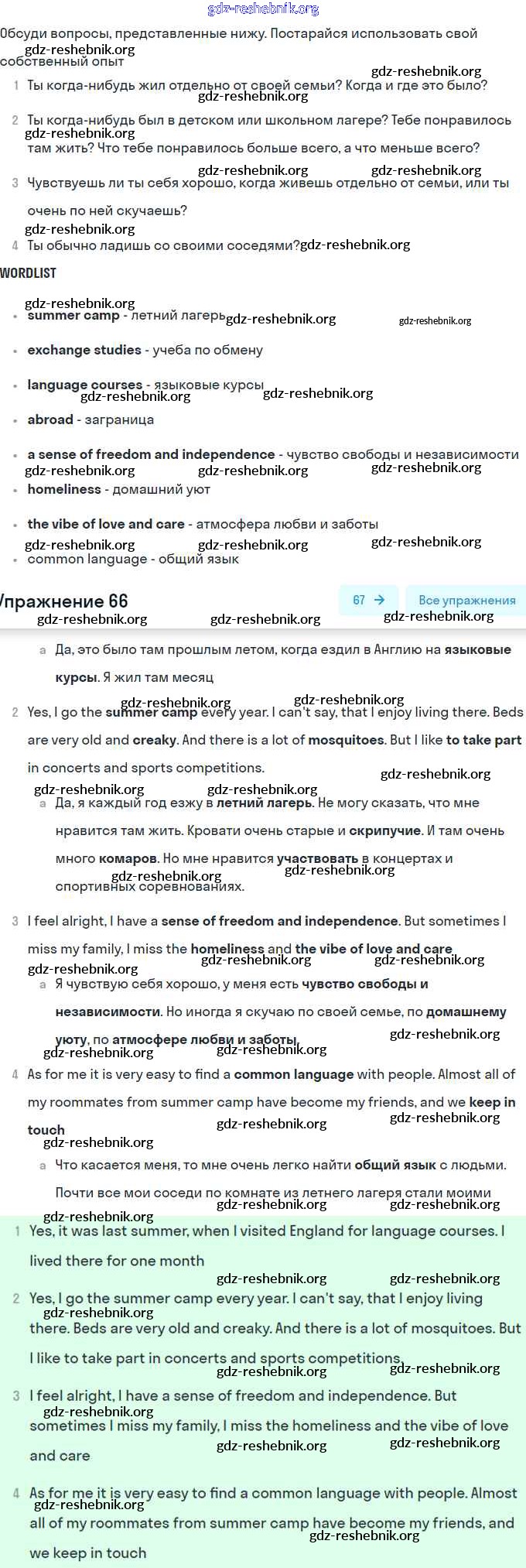 ГДЗ решебники Учебник по Английскому языку 9 класс Биболетова, Бабушис Enjoy English - Unit 1. Families and Friends: Are We Happy Together? 66