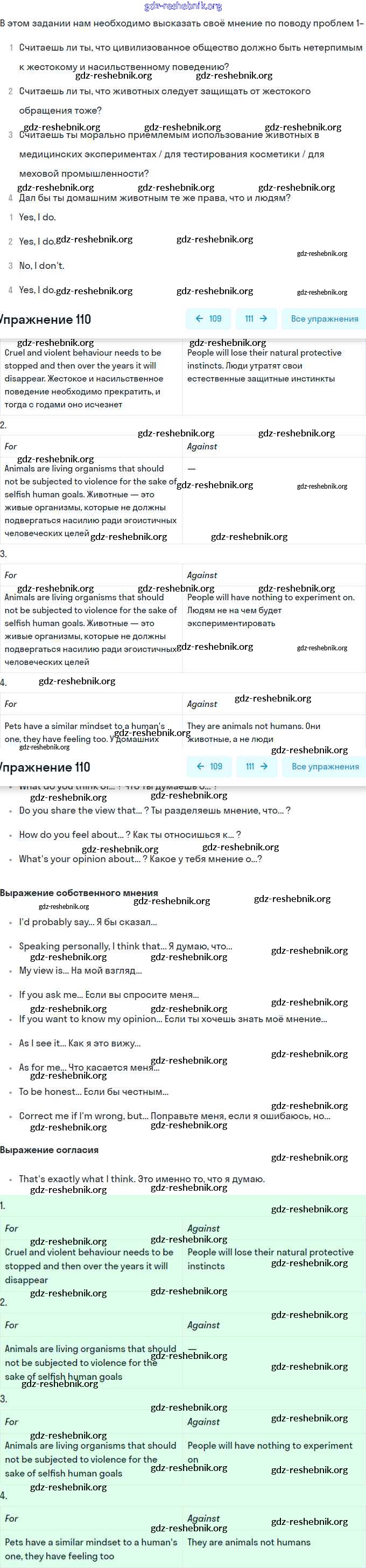 ГДЗ решебники Учебник по Английскому языку 9 класс Биболетова, Бабушис Enjoy English - Unit 3. Can We Learn to Live in Peace? 110