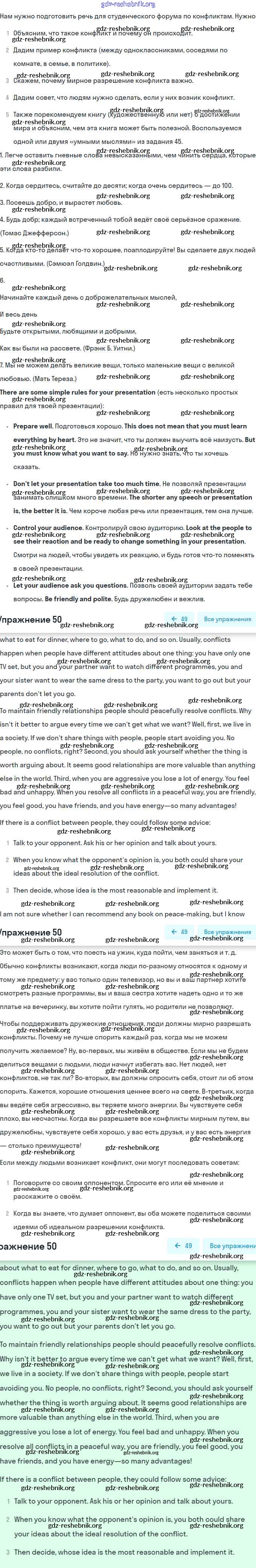ГДЗ решебники Учебник по Английскому языку 9 класс Биболетова, Бабушис Enjoy English - Unit 3. Can We Learn to Live in Peace? 50