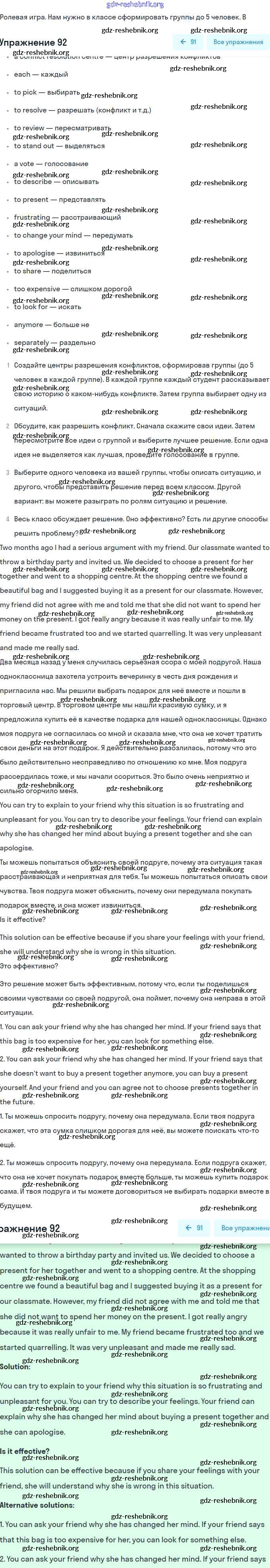 ГДЗ решебники Учебник по Английскому языку 9 класс Биболетова, Бабушис Enjoy English - Unit 3. Can We Learn to Live in Peace? 92