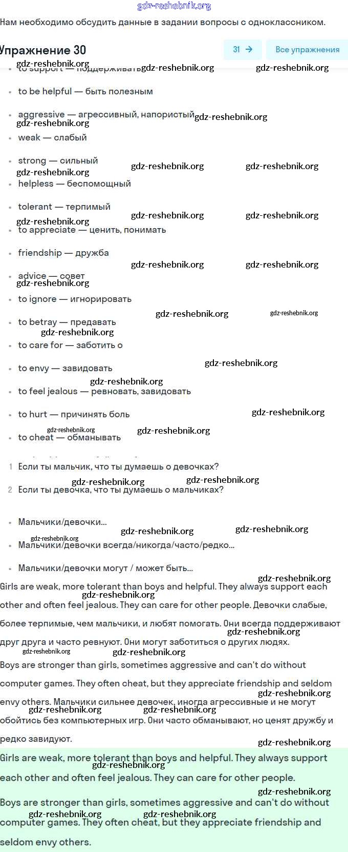 gdz-reshebnik.org - сайт готовых домашних заданий и решебников для школьников по Английскому языку для девятого класса. Предоставляем готовые ответы на задания, авторские материалы к Учебнику Биболетова, Бабушис Enjoy English - Unit 4. Make Your Choice, Make Your Life 30 . Основная часть контента представлена в бесплатном онлайн-формате с удобным и простым интерфейсом.