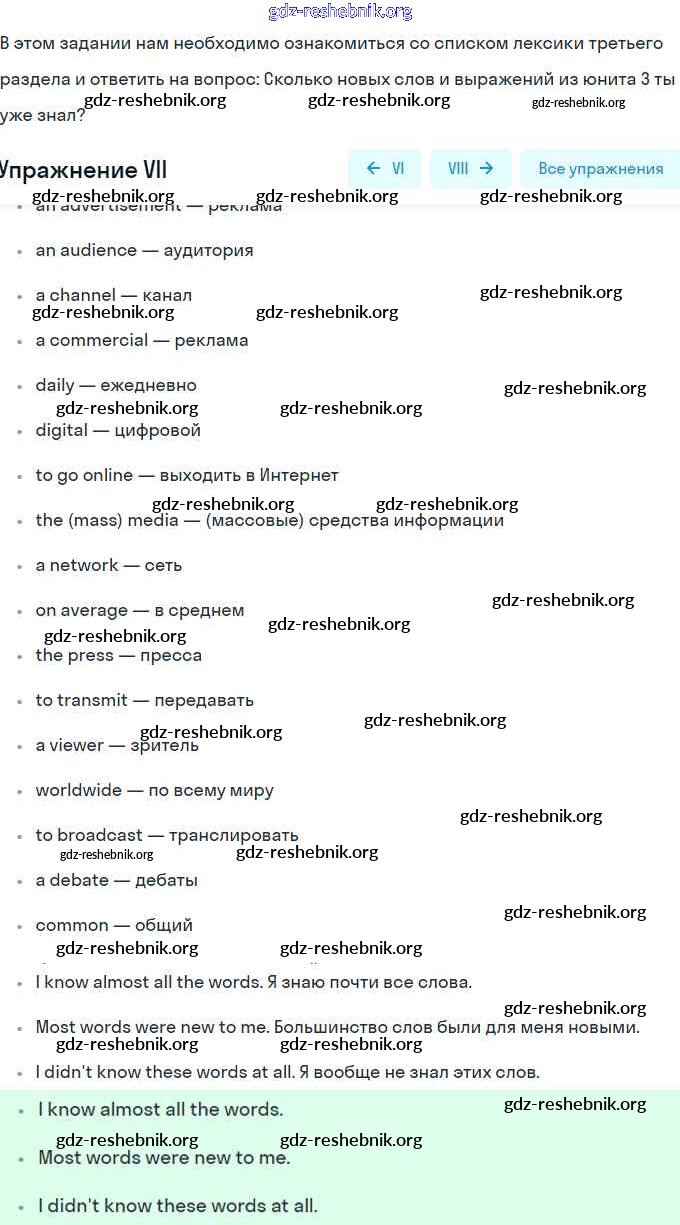 ГДЗ решебники Учебник по Английскому языку 9 класс Кузовлёв, Лапа - Lesson 11 VII