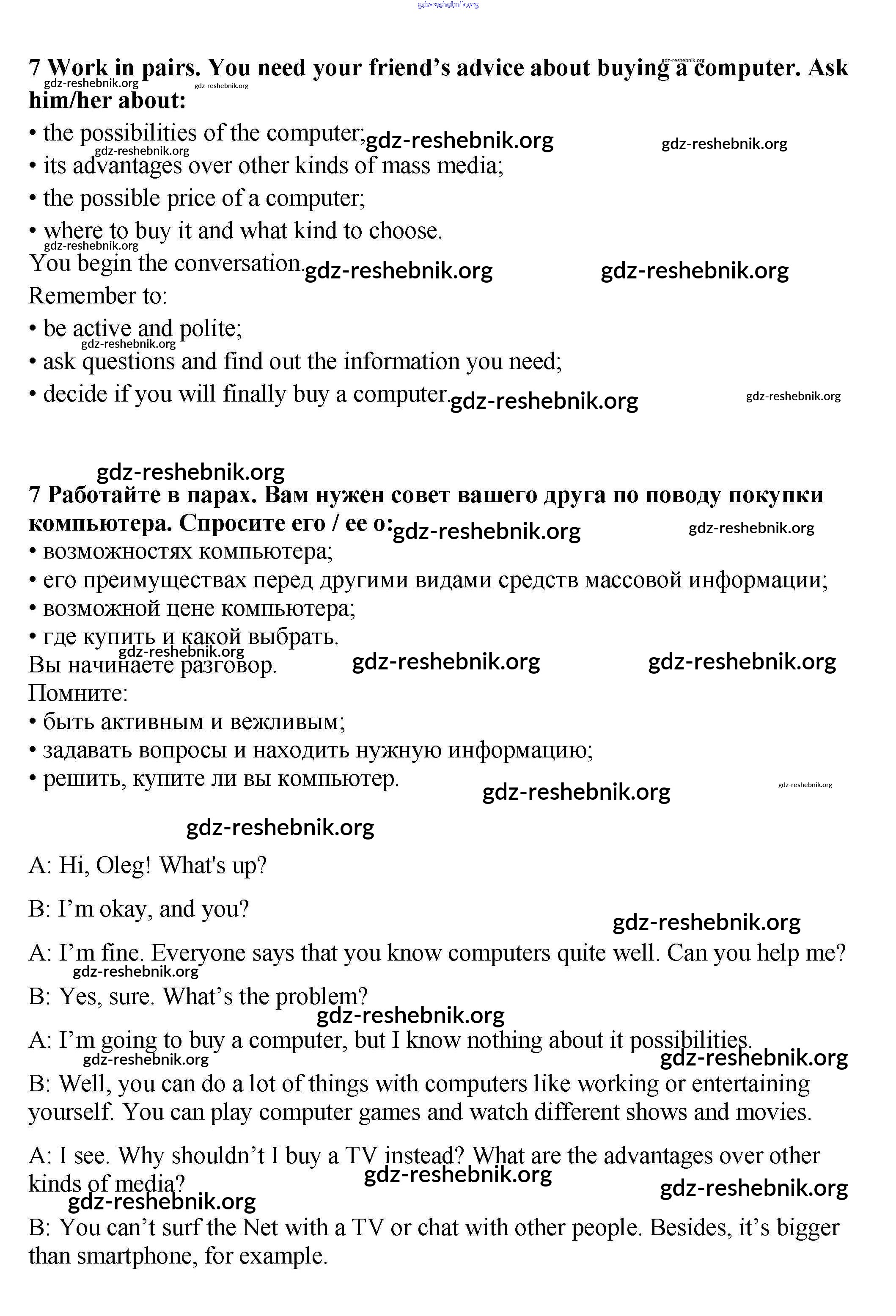 ГДЗ решебники Учебник по Английскому языку 9 класс Афанасьева, Михеева Rainbow Часть 1, 2 - Step 9 7
