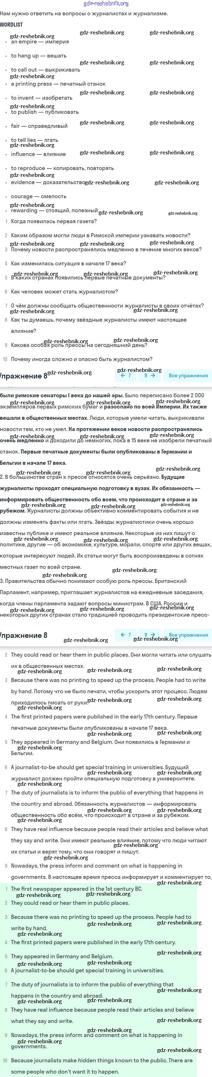 ГДЗ решебники Учебник по Английскому языку 9 класс Афанасьева, Михеева Rainbow Часть 1, 2 - Step 7 8