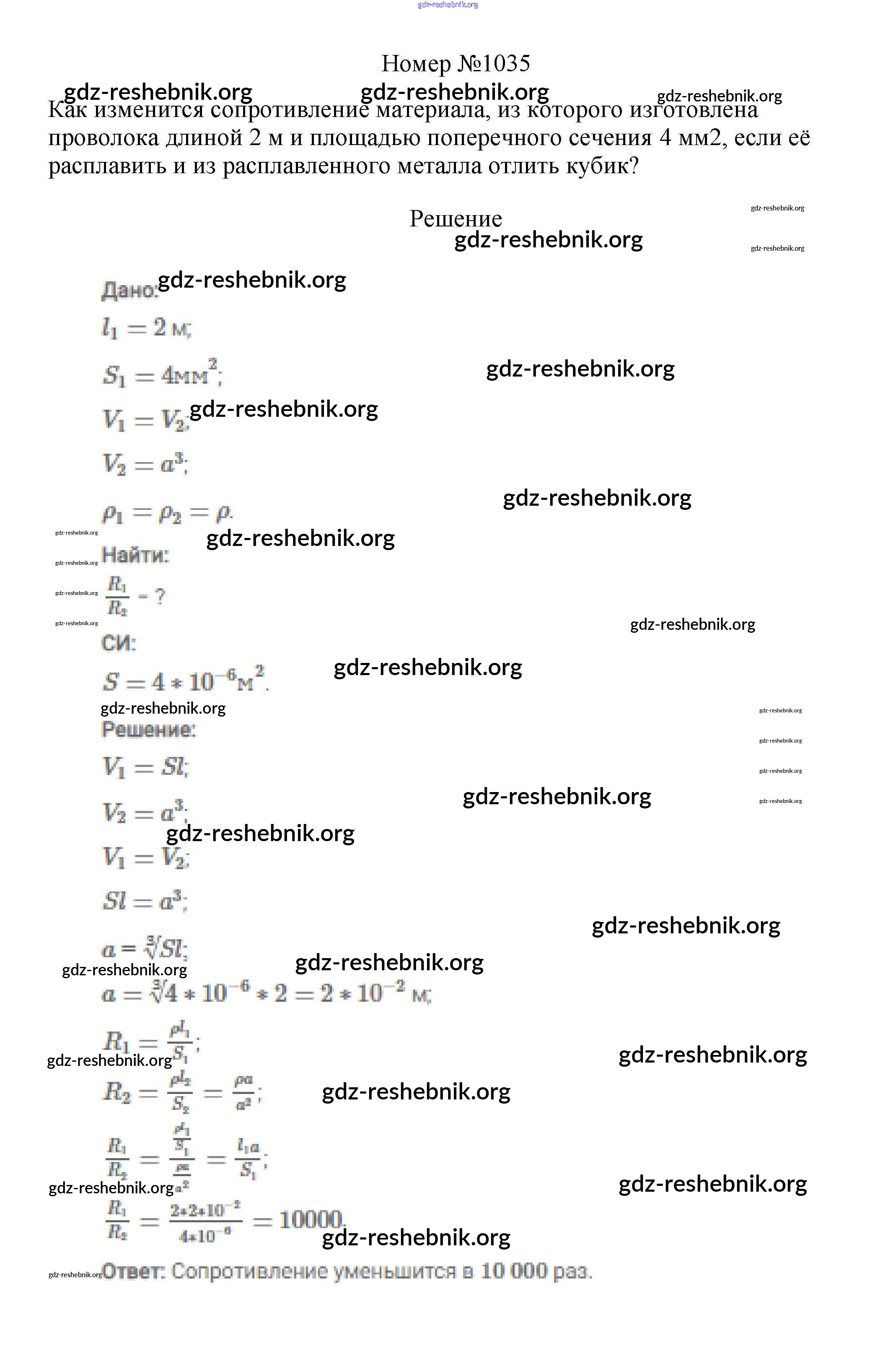 ГДЗ решебники Сборник вопросов и задач по Физике 7-9 класс Марон, Позойский Вертикаль - 8 класс 1035