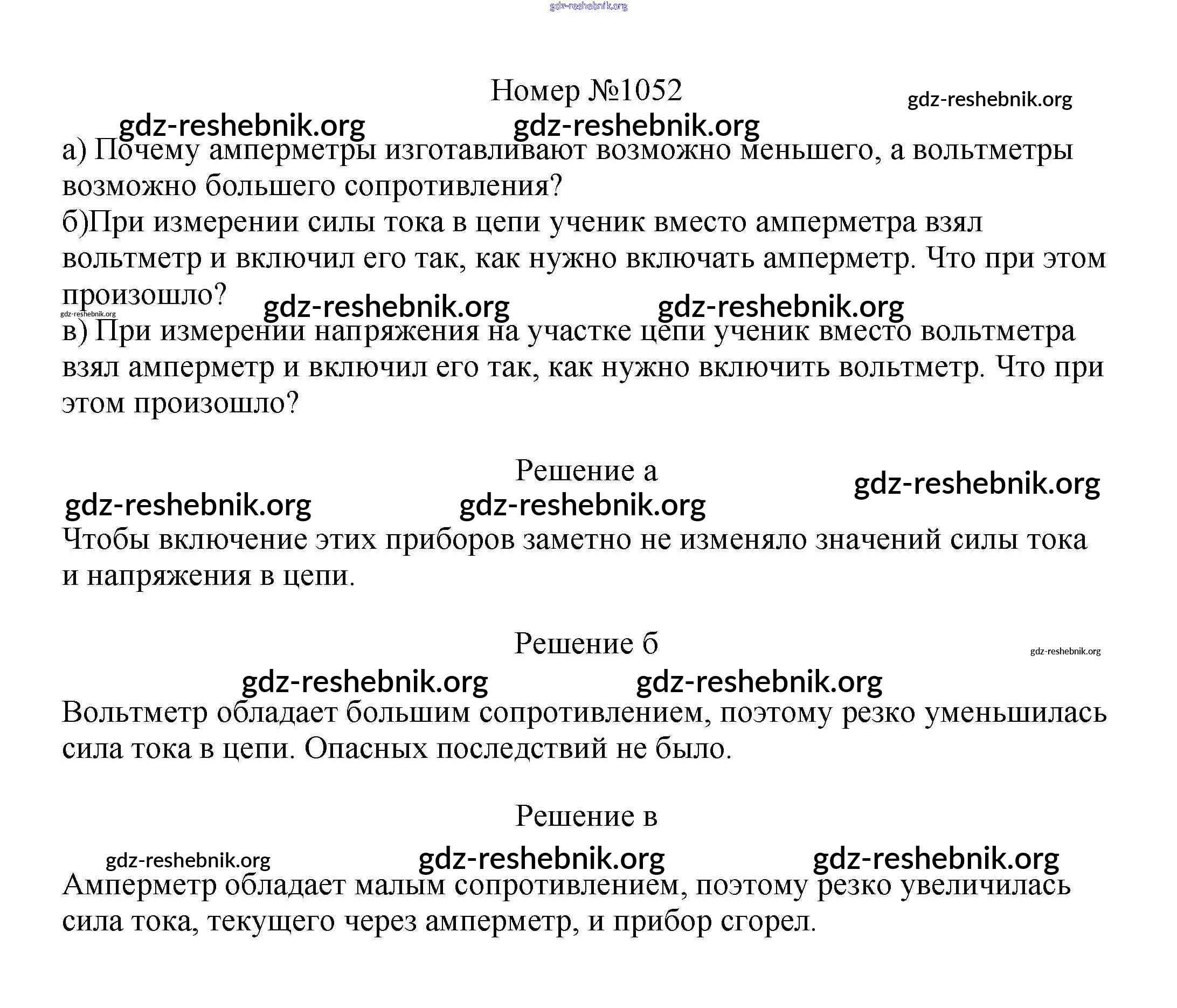 ГДЗ решебники Сборник вопросов и задач по Физике 7-9 класс Марон, Позойский Вертикаль - 8 класс 1052