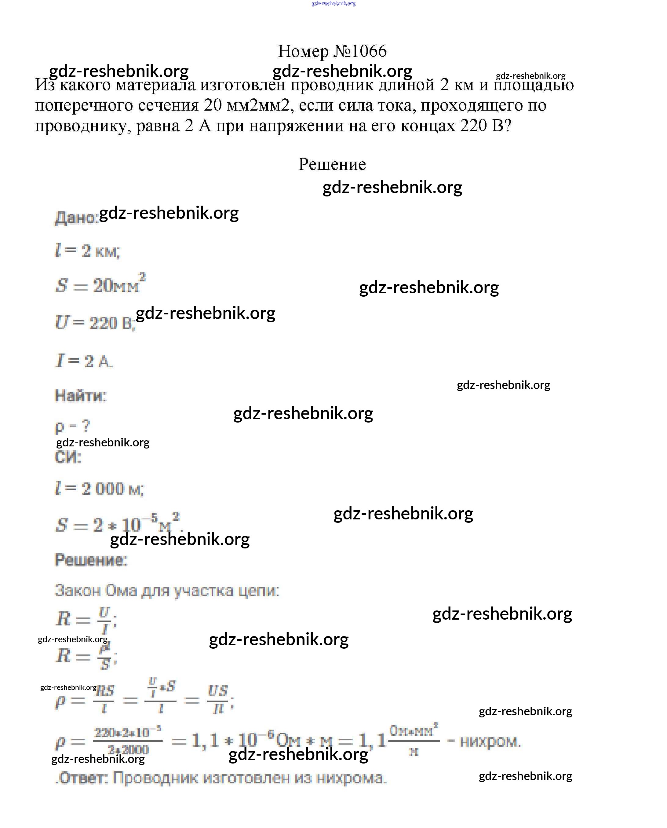 ГДЗ решебники Сборник вопросов и задач по Физике 7-9 класс Марон, Позойский Вертикаль - 8 класс 1066