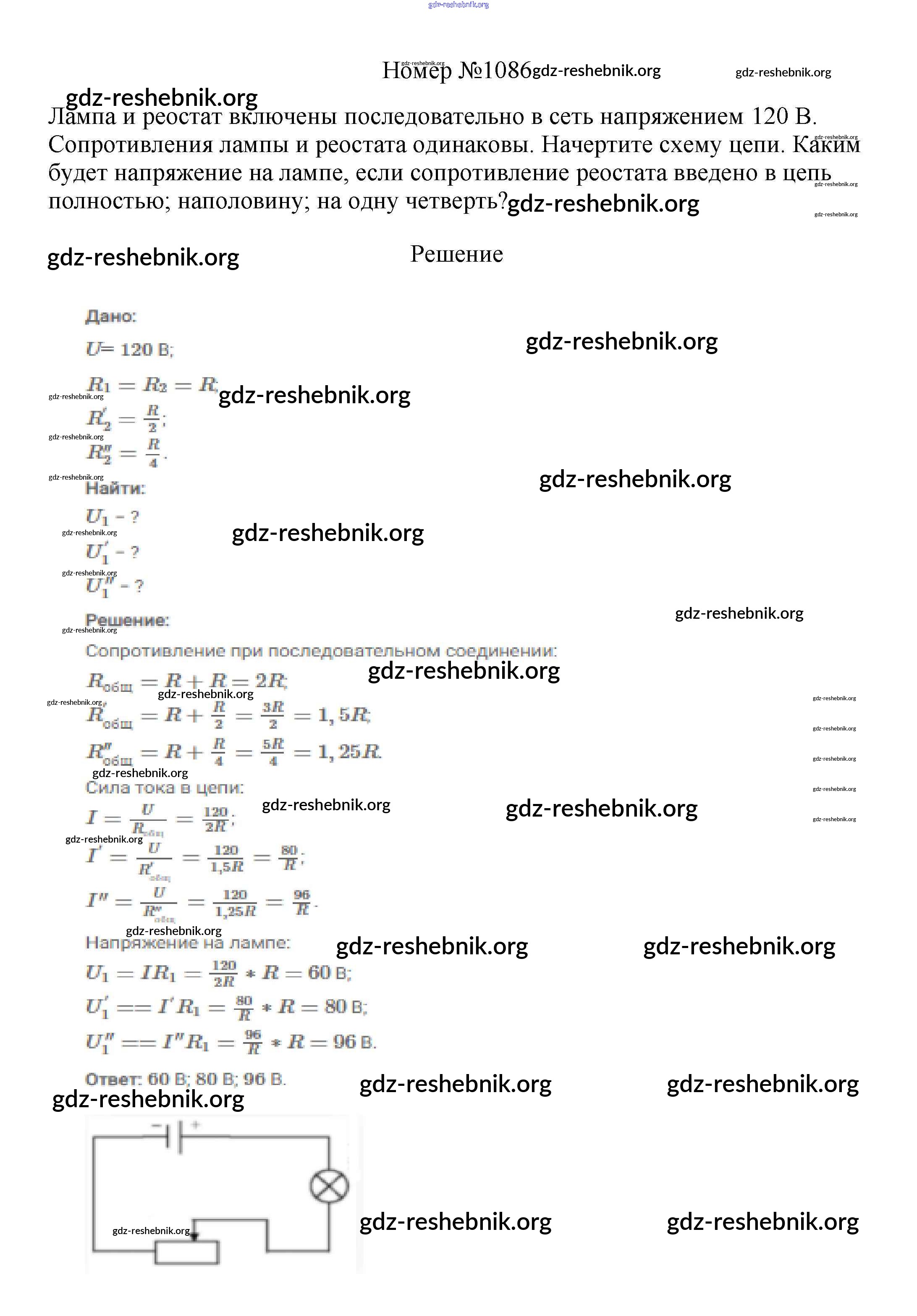 ГДЗ решебники Сборник вопросов и задач по Физике 7-9 класс Марон, Позойский Вертикаль - 8 класс 1086