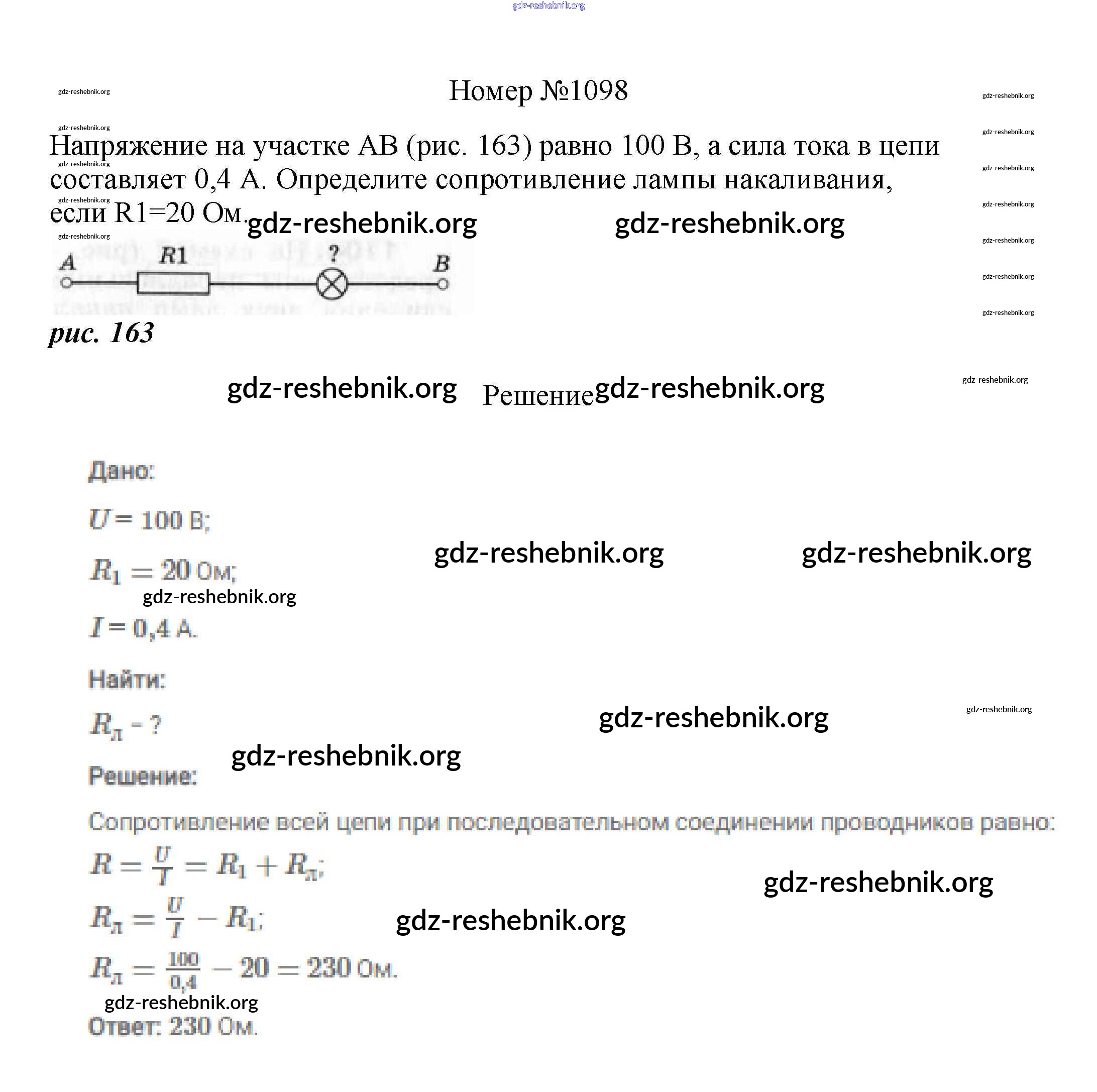 ГДЗ решебники Сборник вопросов и задач по Физике 7-9 класс Марон, Позойский Вертикаль - 8 класс 1098