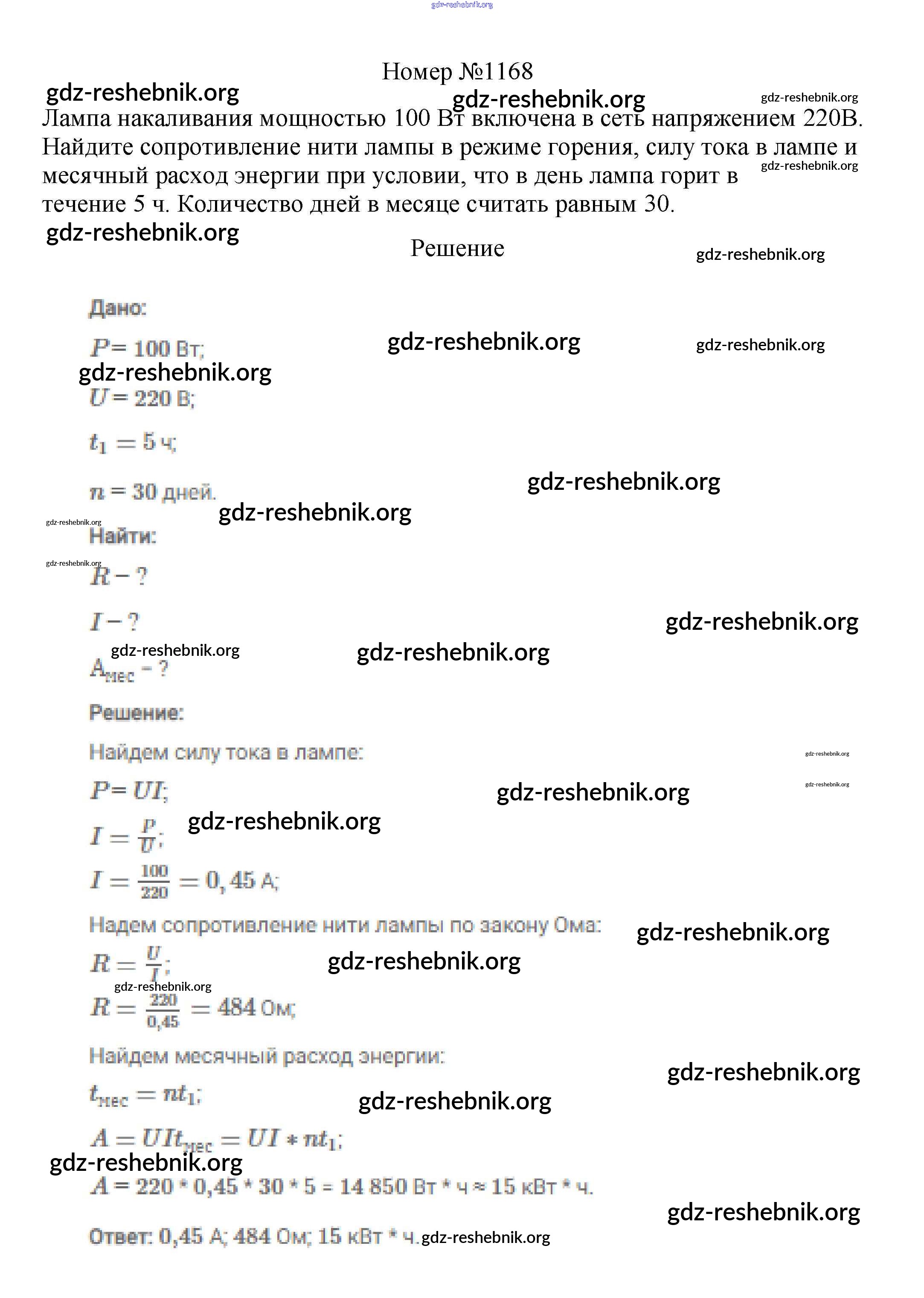 ГДЗ решебники Сборник вопросов и задач по Физике 7-9 класс Марон, Позойский Вертикаль - 8 класс 1168