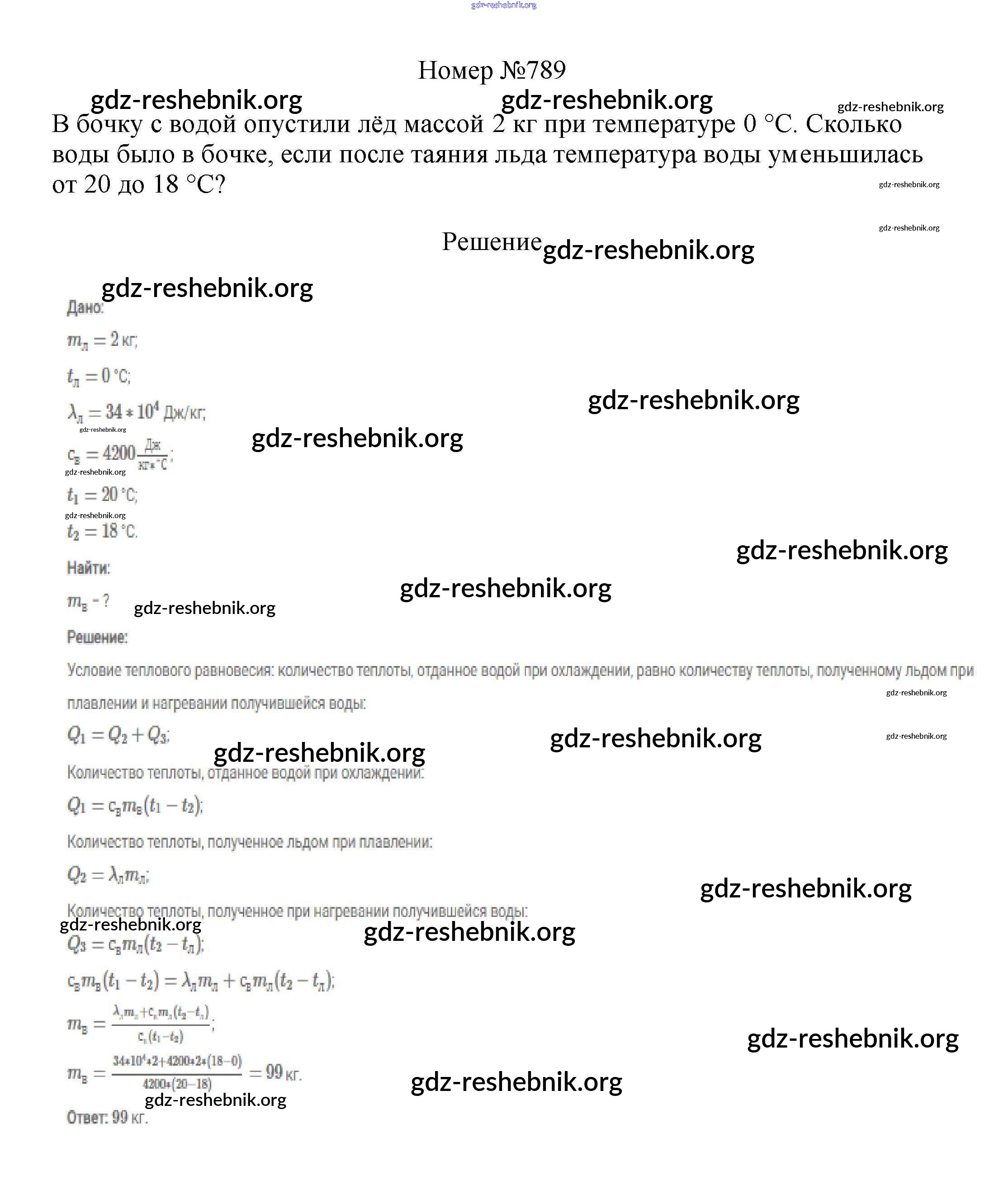 ГДЗ решебники Сборник вопросов и задач по Физике 7-9 класс Марон, Позойский Вертикаль - 8 класс 789
