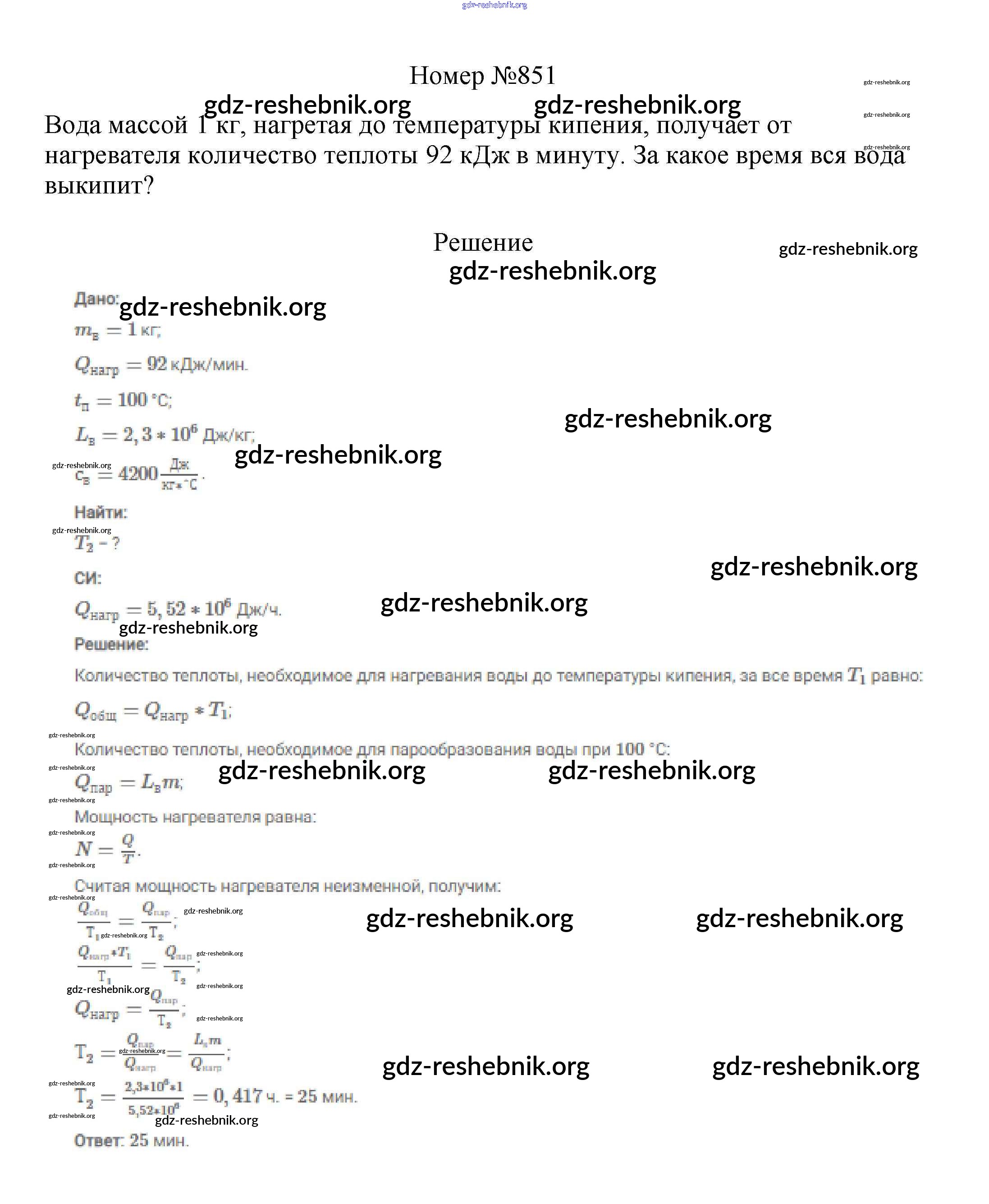 ГДЗ решебники Сборник вопросов и задач по Физике 7-9 класс Марон, Позойский Вертикаль - 8 класс 851