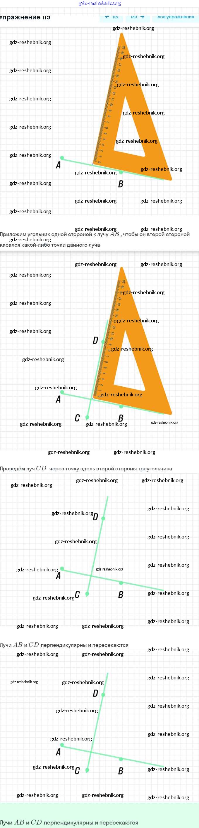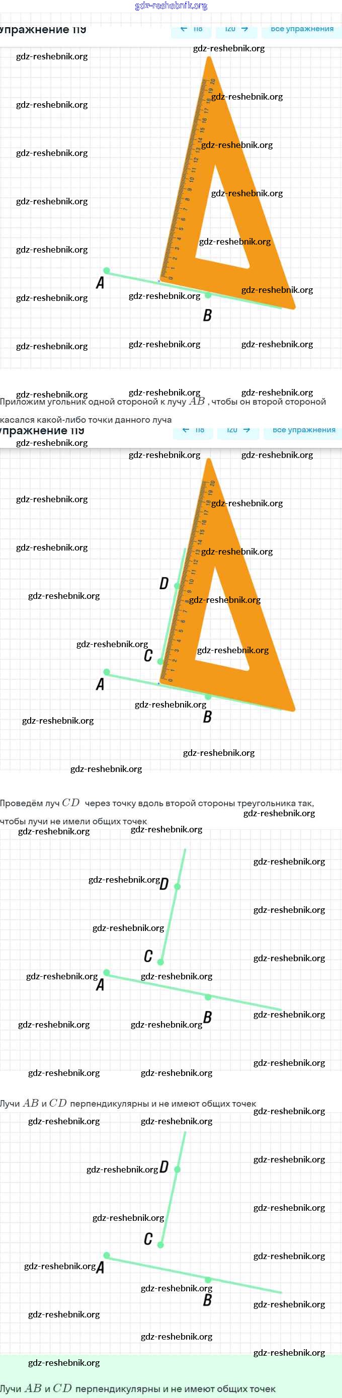 gdz-reshebnik.org - сайт готовых домашних заданий и решебников для школьников по Геометрии для седьмого класса. Предоставляем готовые ответы на задания, авторские материалы к Учебнику Мерзляк, Полонский Алгоритм успеха - §5. Перпендикулярные прямые 119 . Основная часть контента представлена в бесплатном онлайн-формате с удобным и простым интерфейсом.