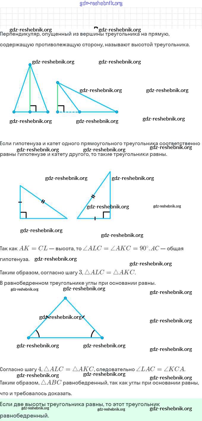 §7. Равные треугольники. Высота, медиана, биссектриса треугольника