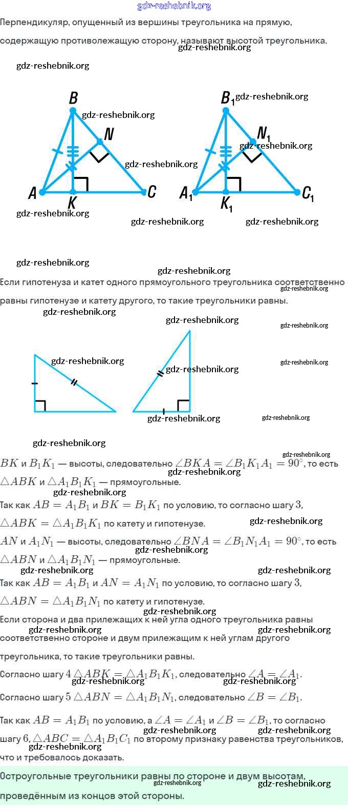 §7. Равные треугольники. Высота, медиана, биссектриса треугольника