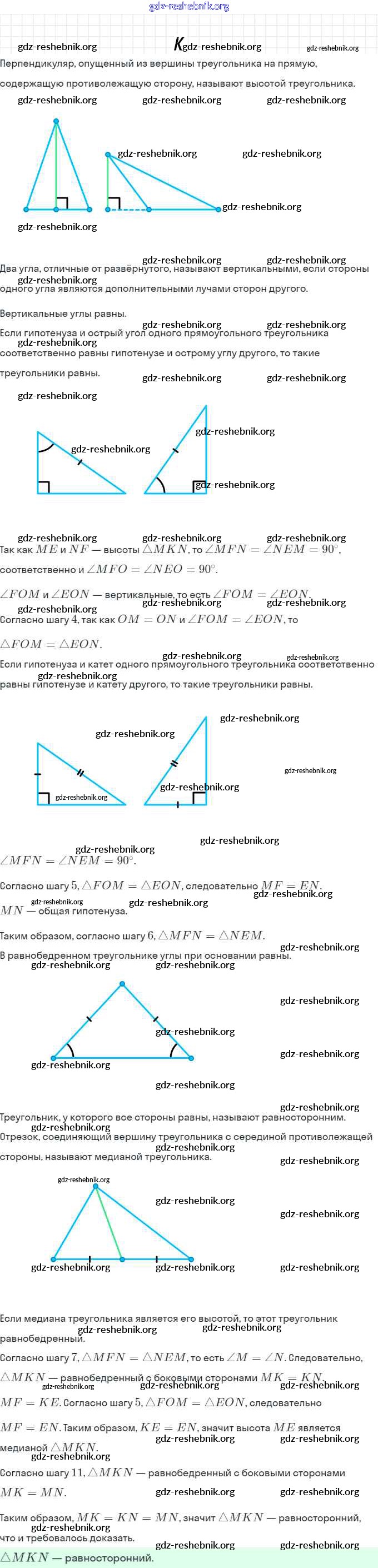 §7. Равные треугольники. Высота, медиана, биссектриса треугольника