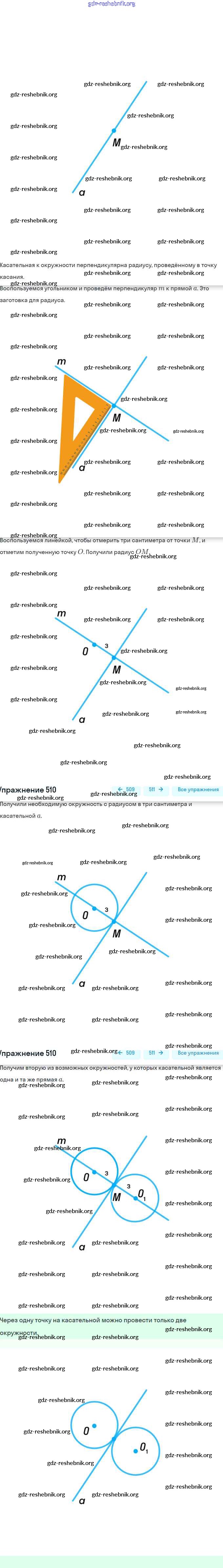 gdz-reshebnik.org - сайт готовых домашних заданий и решебников для школьников по Геометрии для седьмого класса. Предоставляем готовые ответы на задания, авторские материалы к Учебнику Мерзляк, Полонский Алгоритм успеха - §20. Некоторые свойства окружности. Касательная к окружности 510 . Основная часть контента представлена в бесплатном онлайн-формате с удобным и простым интерфейсом.