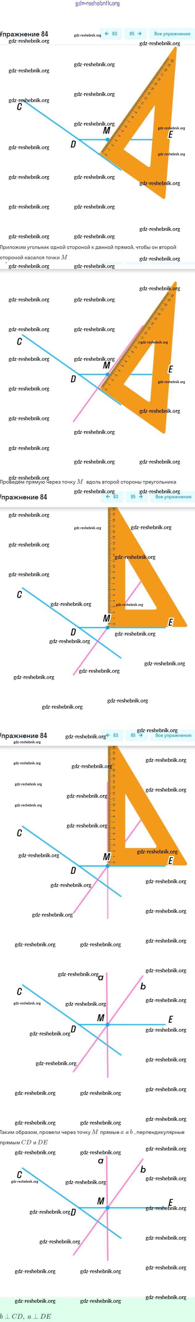 ГДЗ решебники Рабочая тетрадь по Геометрии 7 класс Мерзляк, Полонский Алгоритм успеха Часть 1, 2 - § 5. Перпендикулярные прямые 84