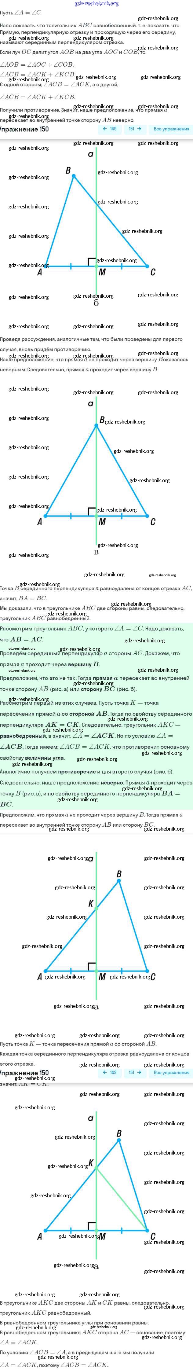 ГДЗ решебники Рабочая тетрадь по Геометрии 7 класс Мерзляк, Полонский Алгоритм успеха Часть 1, 2 - § 10. Признаки равнобедренного треугольника 150
