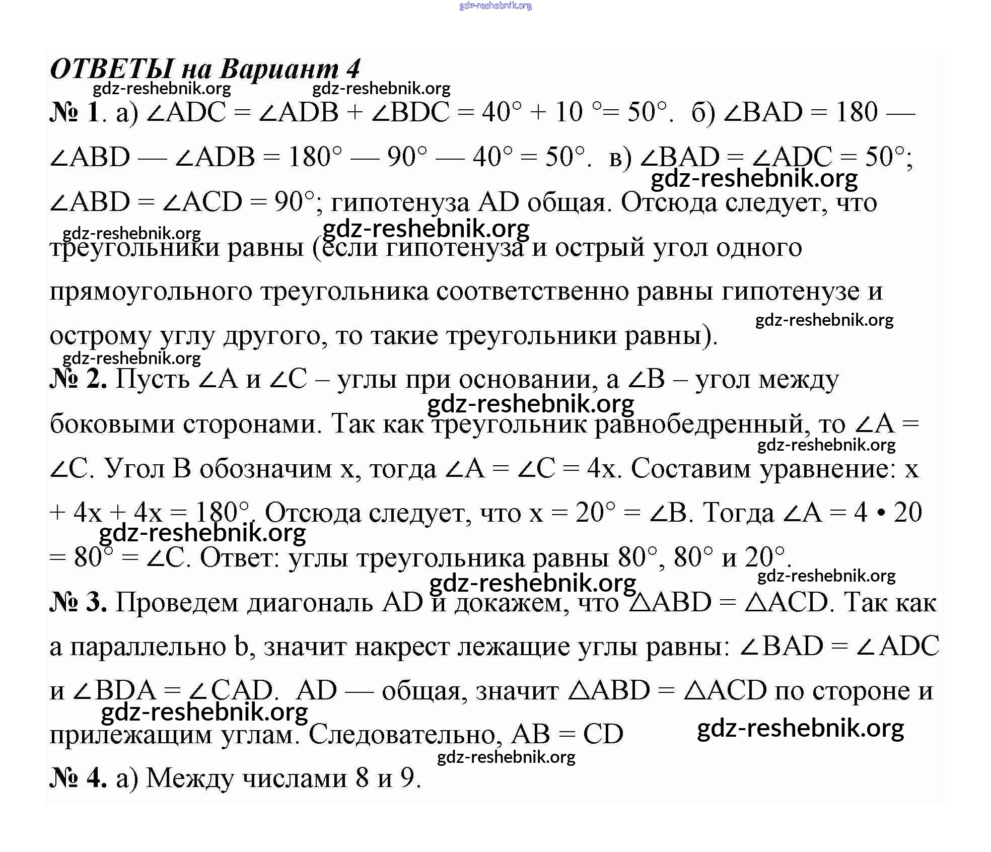 ГДЗ решебники Поурочные разработки по Геометрии 7 класс Гаврилова - Итоговые контрольные работы (Варианты) 4