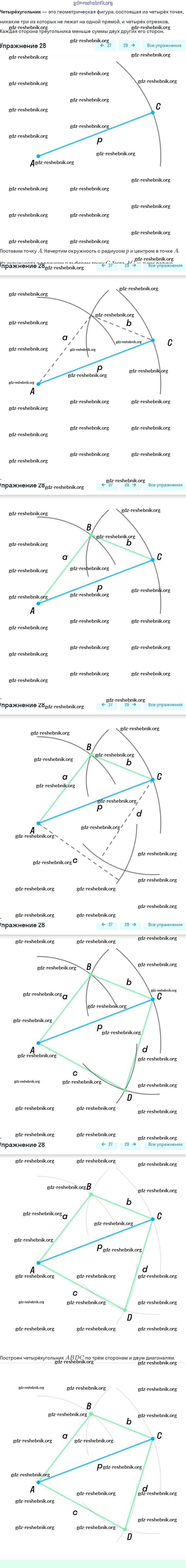 gdz-reshebnik.org - сайт готовых домашних заданий и решебников для школьников по Геометрии для восьмого класса. Предоставляем готовые ответы на задания, авторские материалы к Учебнику Мерзляк, Полонский Алгоритм успеха - § 1. Четырёхугольник и его элементы 28 . Основная часть контента представлена в бесплатном онлайн-формате с удобным и простым интерфейсом.
