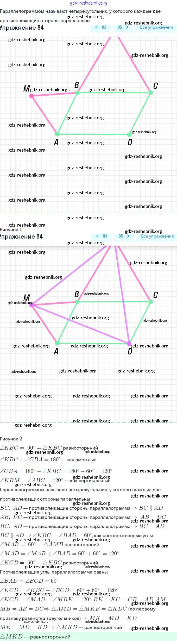 gdz-reshebnik.org - сайт готовых домашних заданий и решебников для школьников по Геометрии для восьмого класса. Предоставляем готовые ответы на задания, авторские материалы к Учебнику Мерзляк, Полонский Алгоритм успеха - § 2. Параллелограмм. Свойства параллелограмма 84 . Основная часть контента представлена в бесплатном онлайн-формате с удобным и простым интерфейсом.