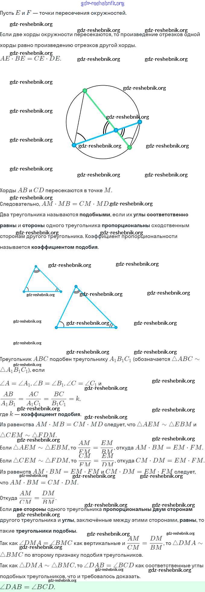 § 13. Первый признак подобия треугольника. Свойство пересекающихся хорд. Свойство касательной и секущей. Теорема Менелая. Теорема Птолемея.