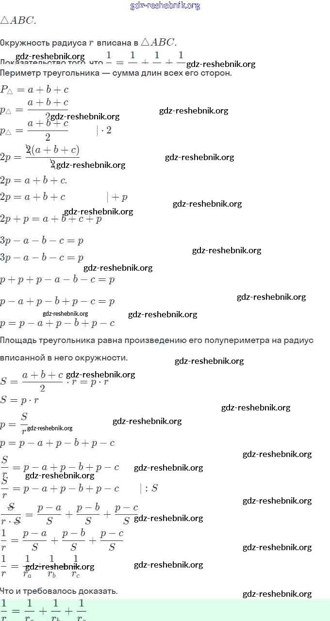 gdz-reshebnik.org - сайт готовых домашних заданий и решебников для школьников по Геометрии для девятого класса. Предоставляем готовые ответы на задания, авторские материалы к Учебнику Мерзляк, Полонский - Вневписанная окружность треугольника 1 . Основная часть контента представлена в бесплатном онлайн-формате с удобным и простым интерфейсом.
