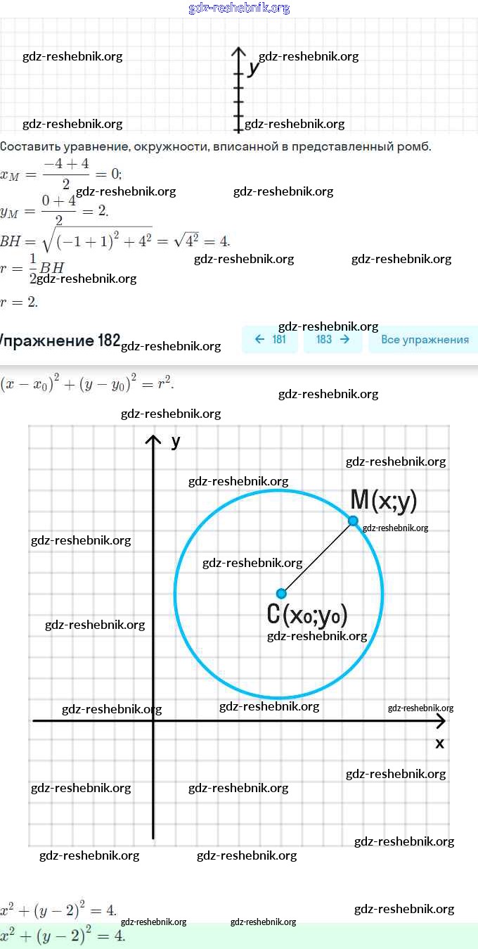 ГДЗ решебники Рабочая тетрадь по Геометрии 9 класс Мерзляк, Полонский Алгоритм успеха Часть 1, 2 - §9. Уравнение фигуры. Уравнение окружности 182