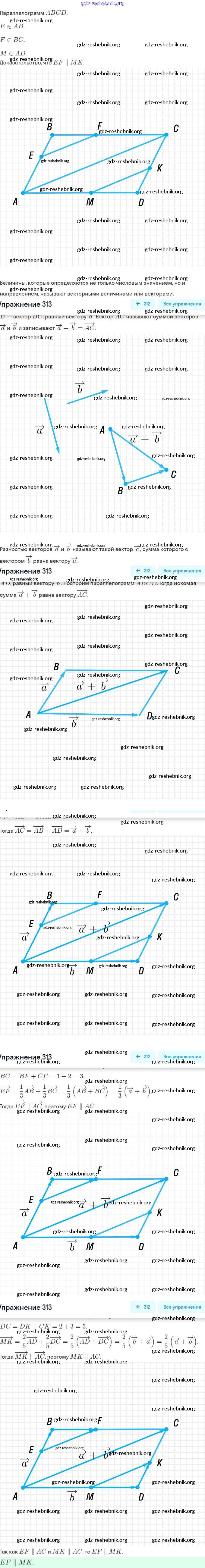 ГДЗ решебники Рабочая тетрадь по Геометрии 9 класс Мерзляк, Полонский Алгоритм успеха Часть 1, 2 - §15. Умножение вектора на число 313