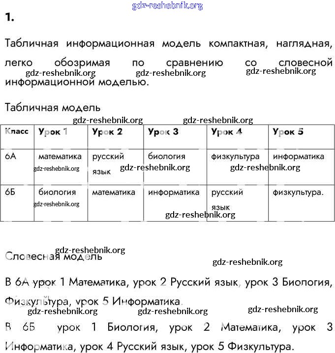 ГДЗ решебники Учебник по Информатике 6 класс Босова, Босова - §11. Табличные информационные модели 1