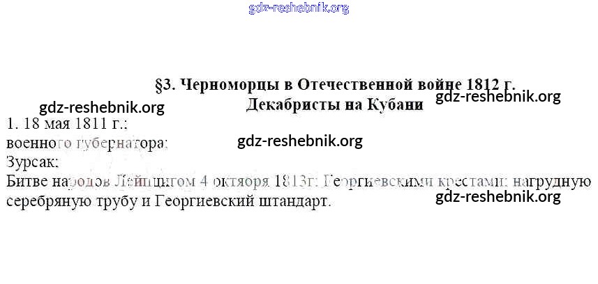 ГДЗ решебники Рабочая тетрадь по Кубановедению 8 класс Гриценко - § 3. Черноморцы в Отечественной войне 1812 г. Декабристы на Кубани 1