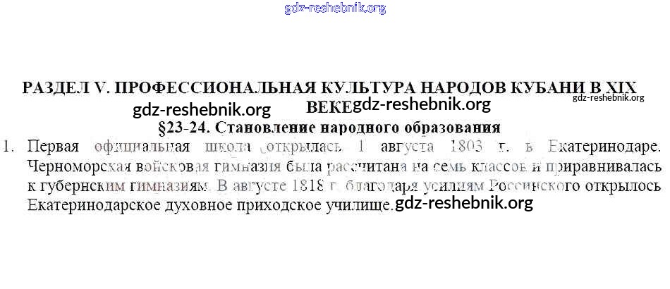 ГДЗ решебники Рабочая тетрадь по Кубановедению 8 класс Гриценко - § 23-24. Становление народного образования 1